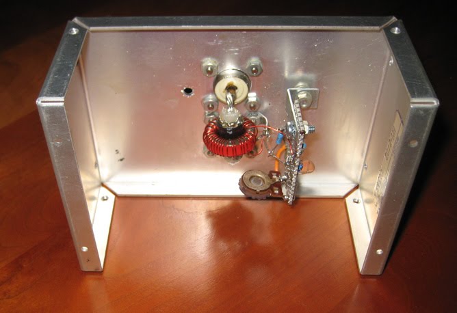 In my junk box I had an old Heathkit HM-2102 SWR meter from which I'd previously pulled out the meter (to replace a blown meter in an SB-220 amplifier: see previous posts) -- its RF box with its two SO-239 connectors would be perfect for the RF current transformer and rectification circuitry.