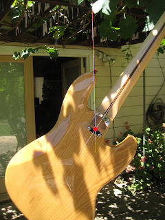 After the paint dried (I gave it 48 hours) I buffed it down with a soft cloth and then added a green felt backing to protect the bass body (felt is usually available at Arts and Crafts or Hobby stores and ought to be inexpensive -- a piece of 6 inch by 9 inch green felt only cost me 29 cents).