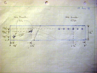 I wanted to keep the amount of metal I would need to purchase to a minimum, which dictated that the holes to mount the extender to the guitar's body be somewhat in-line with the hole for the strap button.