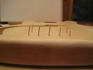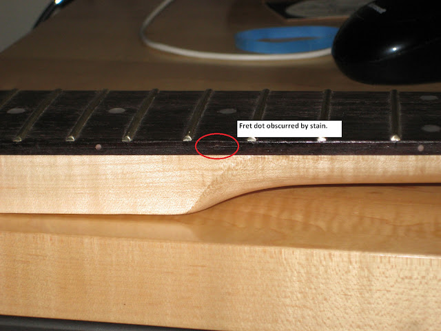 I would also like to point out that this kit is a left-handed bass kit, and it's quite possible that a number of the issues I mention in this and previous posts are due to the fact that it is left-handed and thus the workers might not have had experience with any changes-to-procedure that might have been required for the manufacture of the left-handed body and neck. In other words, the right-handed kits might be better!