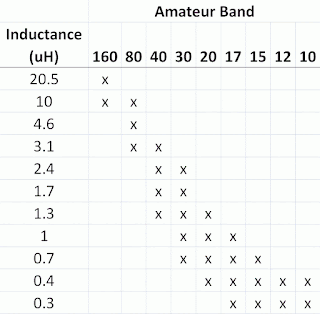 The EZ-Tuner uses a tapped-inductor as its shunt-L component. Here are the recommended inductances that should be used on the various amateur bands (from the QST article).