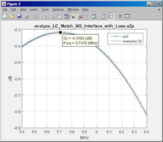 And in the plot, note that Gp(dB) is -0.7291 dB at about 29 MHz. This represents a power loss of 15.5%, calculated using this formula: