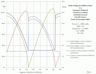 lowpass L-Network performs similarly as capacitor Q is changed).2. Current and Peak Voltage in a Lowpass L-Network.