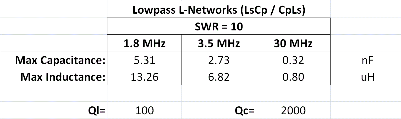 So if I have 3000 pF variable caps, the lowpass L-network is clearly