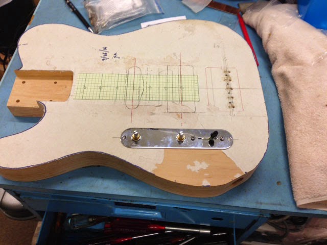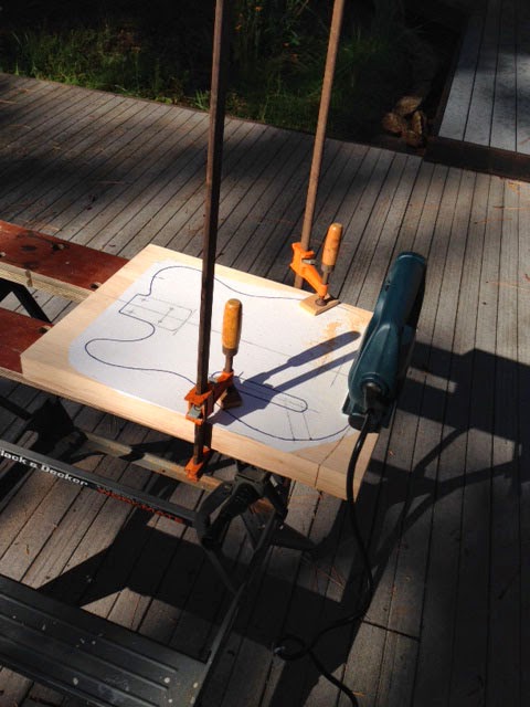 Downloaded some plans for a tele guitar body. Printed them out and assembled them.