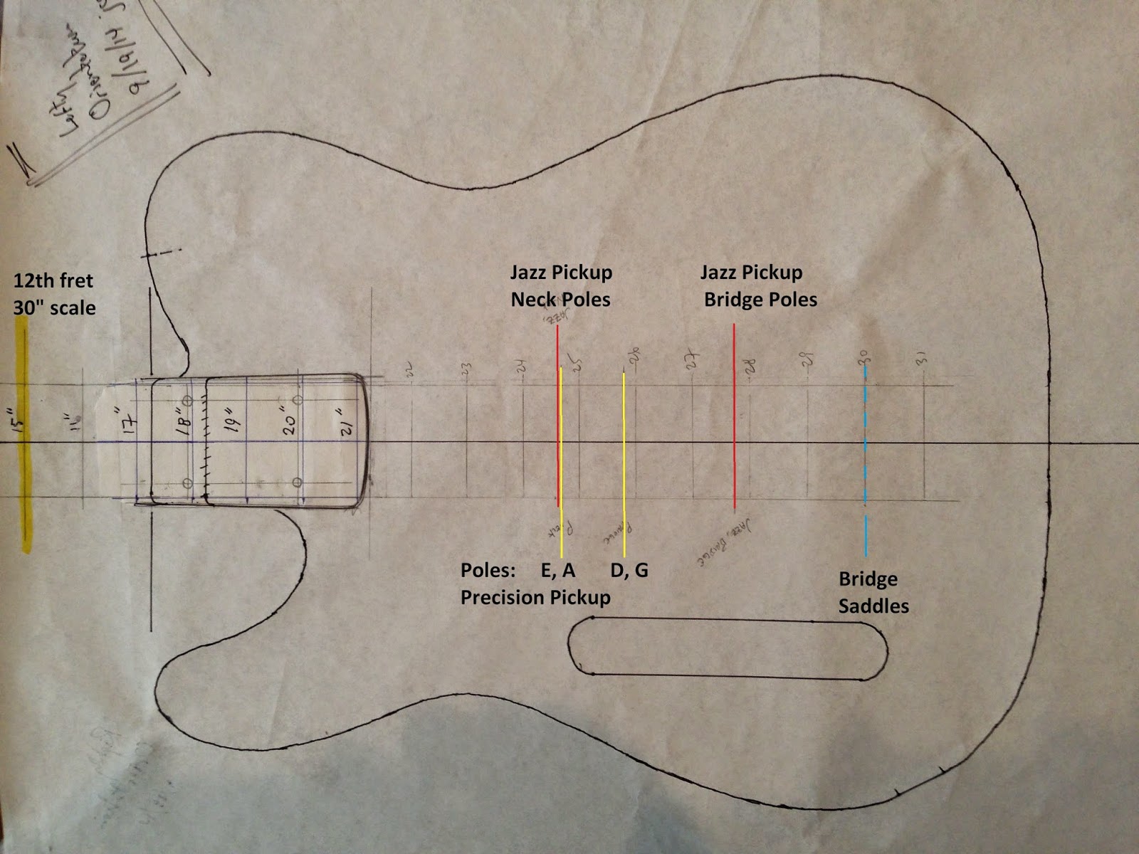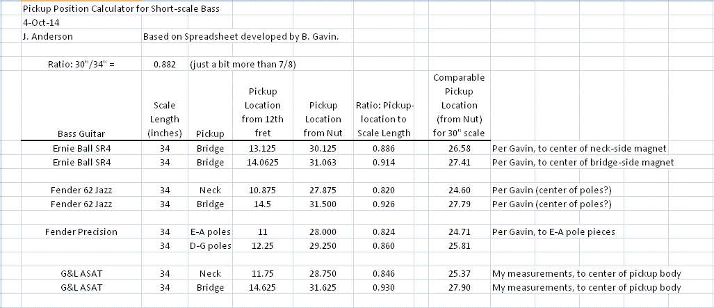 I'll get back to this later. First, let's work out pickup placement for a 30" scale using numbers for a 34" scale (34" numbers from a spreadsheet I found on the web by B. Gavin).