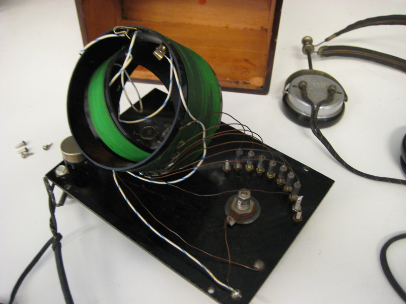(By the way, it should be fairly obvious that the radio has had some mods/repairs made to it sometime during its life. The insulated white wire is one giveaway, as is the shoulder screw holding the detector's bracket to the front panel (the detector under the round metal cover at the left.)