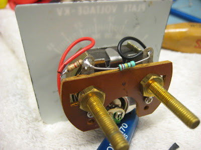 Here's a simple mod that should prevent another blown out meter (such as happened to me with my Plate-Voltage meter). I used two 1N4001 diodes per meter. The mod is this: at each meter connect the anode of one diode and the cathode of the other diode to one of the meter's terminals, then connecd the opposite leads of these two diodes to the meter's other terminal (the end result: two diodes in parallel across the meter's terminals, one diode is reversed from the other diode). Do this for each meter.