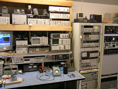And of course, no shack would be complete without a lab (this shot was taken a few years earlier). Most of this equipment was broken when I purchased it, and I repaired it...